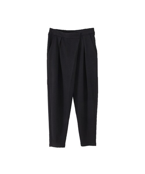 フロントが折り返された個性的なデザインがポイント!伸縮性のある素材を使用し、後ろもゴムになっているのでラクに穿けちゃいます。少し厚みのある素材は安定感があり、トップスをインしてフロント部分を見せるとスタイリッシュな着こなしに。※詳しい洗濯方法については、商品の品質表示タグをご覧ください