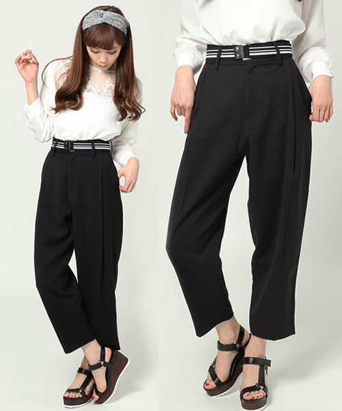 この春注目のワイドタックパンツ。引き続きトレンドのクロップドトップスとも美バランス☆☆☆付属でベルトが付いています。アクセントになるので、トップスINが様になるアイテム。