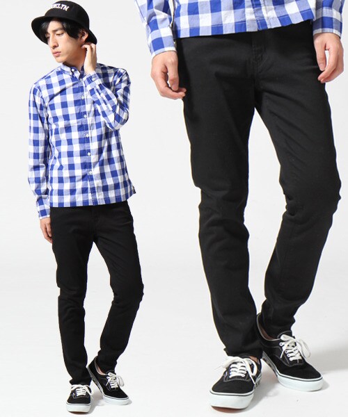 季節を問わず使えるスキニーパンツです。ストレッチを効かせた履き心地抜群のアイテムで、細身でもストレスを感じることがありません。やや光沢のある上品な生地感も特徴で、キレイ目なスタイルにもピッタリはまります。シンプルだからこそ使い回せる、RAGEBLUEイチオシのボトムスです。