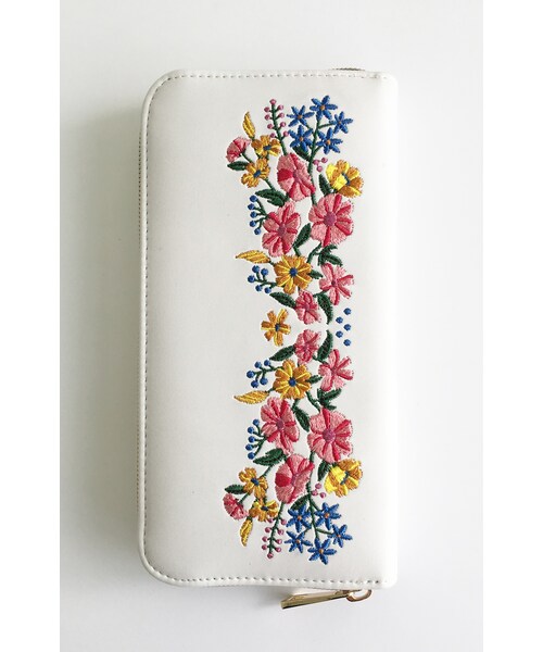 たっぷりの刺繍と、たっぷりの収納力♡ レトロでかわいいお花の刺繍が目を引く、長財布が入荷しました!内側には、豊富なカードポケットとフリーポケットがあり、整理整頓もしやすい☆ 全部で4つも内側にスペースがある優れもの。ファスナー付きの小銭入れは、口が大きく開くので、小銭の出し入れも簡単です。それぞれの生地の色に映える繊細な花柄刺繍が施されています。裏側は無地のプレーンなデザインです。<ブランド情報>polka polka(ポルカポルカ)。女子のかわいい雑貨をお手頃価格で取り扱うブランド。ベーシックスタイリングをワンポイントアップ、コーディネイトの縁の下の力持ち!なアイテムがたくさん。