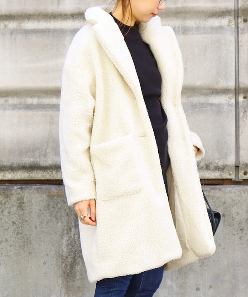 【ポイント】 トレンドのビッグシルエットで差がつくこなれボアコート。 いつもと違ったワンランク上のおしゃれを楽しむビッグシルエットボアコート。 大人カジュアルスタイルにピッタリでボトムスにもスカートにも相性抜群の優秀アイテムです! ☆スタッフおすすめポイント☆ ボトムスもワイドシルエットで全体をゆったりまとめるコーデもおすすめ! 【生地感】やや厚みのあるボアで重量感のしっかりとした印象に。 ※ネイビーはブラックに深いお色味となります。 【サイズ感】 普段Sサイズ着用の方⇒○ 普段Mサイズ着用の方⇒○ 普段Lサイズ着用の方⇒△ ※体型やお好みにより個人差がございます。 あくまで着用時の雰囲気の目安としてお考え下さい。 ※モデル着用写真は撮影環境により、多少実際のカラーと異なる場合がございます。予めご了承をお願いいたします。 ※生産時期により若干の色ブレやサイズの変動が生じる場合がございます。予めご了承くださいますようお願いいたします。