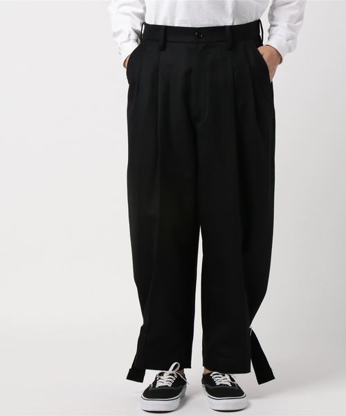 秋冬らしいウール素材を使用したパンツ。裾がバックル仕様になっていて、見た目のデザインだけでなくシルエットも調節できるつくりになっています。