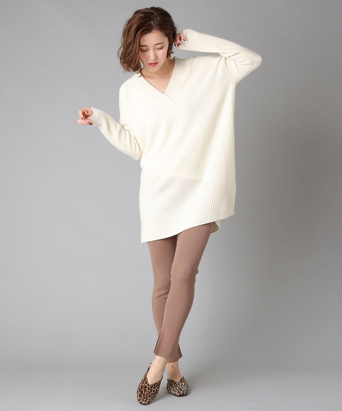 ヒップがすっきり隠れる下半身安心丈なチュニックニットです♪スッキリとしたVネック開きと裾のスリットで大人の「こなれ感」な着こなしが叶う一品です。今年はボトムにニットレギンスやレギパン合わせがオススメです♪素材は7.5マイクロンをいうWOOLの中でも高品質のタスマニアラムを100%仕様。毛質が細いので、しなやかな肌触りとふんわりした風合いが表現可能となっています。チクチク感もなくストレスフリーな着心地です。包まれるような温かさが魅力の一枚です。是非お試しください~♪