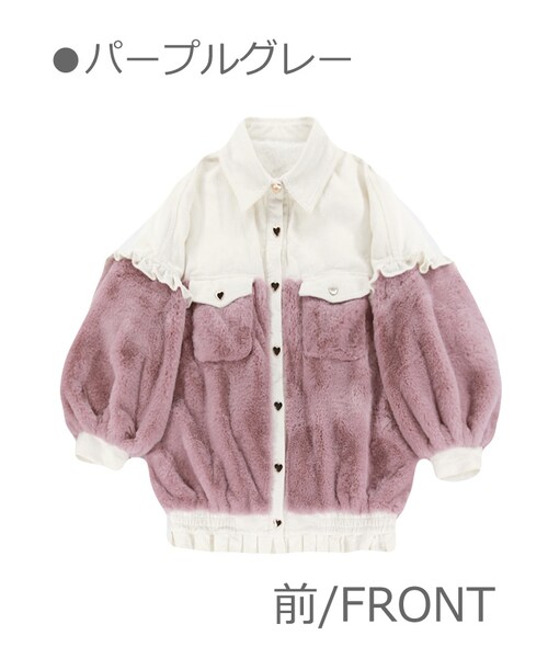 ♡2018Winter New Collection♡ コーデュロイ×ファー切替ジャケット 人気の生地を2種類使った切り返し 袖と裾にはミニフリルをあしらい ハート型のボタンで甘さをプラス 裏地モコモコで暖かさをホールド インパクトのあるキュートなデザイン [パープルグレー]と[ベージュ]の2色展開