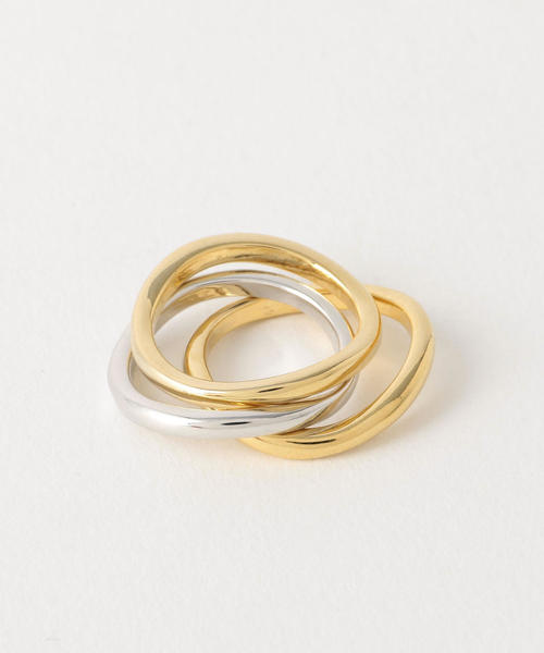 手元を華やかに演出してくれる2色のメタルカラーを組み合わせた3連リング。装飾なしでシンプルながらも、カーブを加えて個性的なデザインに仕上げました。セットでボリューム感を出したり、バラして使用するアレンジもオススメ。スタイルやシーンを選ばずお使いいただけるアイテムは、ご自分用にはもちろんギフトにも是非。店舗へお問い合わせの際は、全国のBEAUTY & YOUTH各店舗まで下記の品名/品番をお申し付け下さい。品名:FCM BY MTL 3L CARVE R 品番:1833-699-3891
