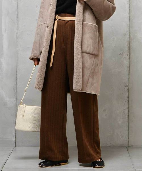 秋冬らしいクラシカルなヘリンボン柄のパンツ。暖かみのあるウール混素材が、シーズンらしさを加速します。シンプルなタック入りのワイドシルエットは適度なリラックス感で履き心地が良く、ワイドすぎないすっきりとしたシルエットがきれいなパンツです。今季はショート丈のニットなどトレンド感のあるアイテムとのコーディネートもオススメです。