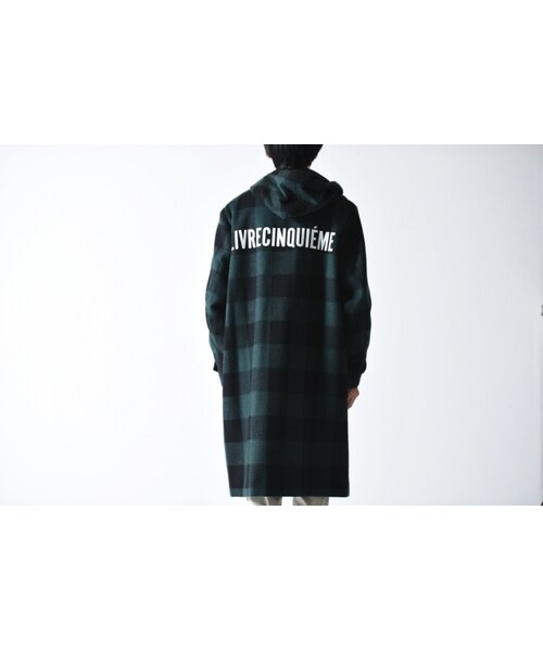 “LIVRE CINQUIEME” 第5の書物を記す、 シーズンナンバーがバックプリントとして配置された 中綿入りのリーヴルコートとなります。 原型にはデビューシーズンの”PAGE1″で発表されたベンチコートを使用し、 シルエット、デザインを再定義。 軽量感のあるストレスフリーな着心地かつ保温性を持つ、PAGE5 を代表するヘビーアウター。 中綿を使用することによって、保温性の向上し、シルエットに立体感を持たせています。 シルエットやデザインの再構築だけでなく、利便性を加味した細部のさりげないディテールや、 機能面を充実させる事で、デイリーに着用しやすい恒久的な冬のコートとして提案しています。