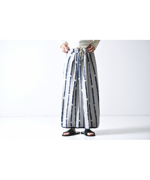 sneeuw ストライプJQユニセックススカート。 ストンと裾までストレートに落ちるデザイン。 程よいリラックス感と着心地の良さが印象的なコントラストを魅せる一着。 オリジナルテキスタイルで立体的な凹凸感を表現するのがsneeuwならでは。 また、歩く度に揺れ動き現れるドレープもお楽しみ頂けます。 オリジナルテキスタイルとベストマッチしているやわらかい素材感といった随所に拘りを感じることができます。 両サイドにポケットが施されているので利便性も◎ こちらのアイテムはユニセックスの為、ONE SIZE展開。 男女ともにゆったり着用頂けます。