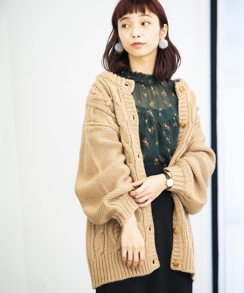 ライトアウターとしても大活躍 ケーブル編みで仕上げたニットミドルカーディガン。単色仕様ながらも、遊び心のあるデザインで気軽に着こなしのアクセントになります。 肌触り良く、リラックスして快適に着用頂けます。 程よくゆとりのあるシルエットでフェミニンな雰囲気を演出してくれるひと品。 ライトアウターとしてサラッと気軽に羽織れるのも嬉しいポイント。 今季はベレー帽やチョーカーなど、小物で遊びを効かせたコーディネートもオススメです。