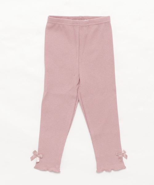 楽にはけて、ラフな着こなしに! 今風コーデが叶うサーマルレギンス 今おしゃれな人が熱視線を送っているのが、 ラフな着こなしも スタイリッシュに決まるサーマルレギンス! 表面に格子状の凹凸がある「サーマル」素材。 そのワッフルみたいな表面感が コーディネイトに旬な表情をプラスしてくれる一枚です。 メロウフリルの裾にサテンリボンをのせて、 大人っぽいリラックス感と抜け感に キッズ女の子らしさを残して。 スウェットやシャツワンピ、チュニック、 ロングスカートの下からのぞかせてコーディネート、 デイリーにおしゃれなレイヤードスタイルを楽しんで! 伸縮性:あり 生地の厚み:ふつう 透け感:ややあり ポケット:なし 裏地:なし ※湿った状態・摩擦により移染する可能性があります。色が馴染むまでは単独で洗い、淡色品との組合せはお避けください。 ※商品の素材や色合いなど、生産時期によって差異が生じます。