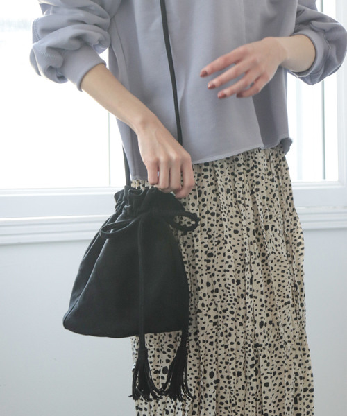 ★18awトレンドショルダーバッグ★ ナチュラルカラー巾着ショルダーバッグ2018年は巾着・ショルダーバッグが大流行!! どんなスタイルにもマッチする、アクセサリー感覚で持てるアイテムは、 このシーズンは取り入れるのがマスト!! コーデに取り入れるだけで、一気にトレンド感がUPします♪ いつものスタイルにお好みのアイテムを身に付けて、今年顔コーデにトライしちゃいましょう♪ タッセルの揺れが大人可愛いショルダーバッグ!! ちょうど良いサイズ感で、持ち運びしやすいデザインです♪ 柔らかい生地を使用しているので巾着タイプでも開閉しやすく、 手触りの良いスウェード生地使用♪ 人気のナチュラルカラー3色展開♪ 定番人気の可愛らしく秋冬のファッションとコーディネートしやすいカラーになっています♪ コロンとした丸いフォルムがオシャレ感をグッとUP♪ テイストを選ばないシンプルなデザインはデイリーユーズにおすすめ♪ スマホ・ハンカチ・ポーチ・長財布とたくさんはいるのでちょっとしたお出掛けにも便利!! ちょっとそこまで、というときも手抜き感のないコーデが叶います!! ★おすすめポイント★ ●内側にカードが入るポケットとチャック付きポケットあり♪ ●底板がついているので巾着でも型崩れしにくい!! ●柔らかい生地で開閉しやすい!! ●通勤通学にも◎ ●シンプルなデザイン♪ ●長財布が入る♪ ●ギフトにも最適◎ ■カラー:キャメル・ブラック・アイボリー トレンド/ミニマリスト/タッセル/巾着/ショルダーバッグ/ナチュラルカラー/スウェード 《SESTOの商品は全てプチプラアイテムです。》