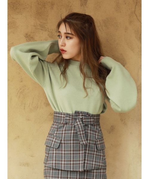 アップネックがモード感あるニット★▼特徴袖がリブになっており、パフスリーブになるデザインがポイント!ベーシックで1枚あると様々なスタイリングが出来るアイテムです。▼スタイリングカジュアル:デニムやフレアパンツとのスタイリングがオススメ。パフスリーブで少し甘めのデザインであるため、パンツ合わせですとカジュアルさをMIXしたスタイリングに。きれいめ:ミドル丈のスカートとの合わせが大人っぽいスタイリングに。チェック柄を取り入れると、より女性らしいスタイリングに仕上がります★また、ウエストをタックインするとスタイルアップ効果があり、全体のバランスが良くなります!