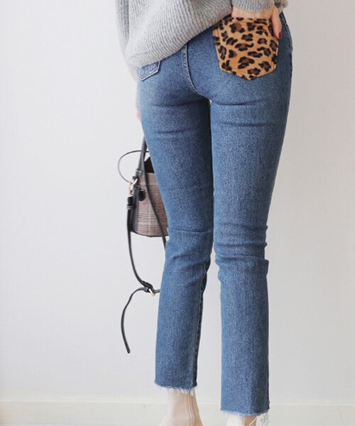 ポケットのレオパード柄がさりげないおしゃれポイント♪自然にカットオフされた裾が今っぽい一枚です。オーバーサイズのニットとアンクルブーツをあわせればトレンドコーデの完成★ ※WEARに記載してある金額と、DHOLIC通販サイトに記載してある金額にシステム都合上、稀に誤差が生じます。正しい金額はDHOLIC通販サイトに記載された金額です。