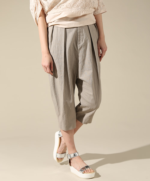 軽やかなコットン素材で程よく効いたワッシャー感がヌケを演出してくれるハンパ丈パンツ。今季大注目のハイウエストタイプだから、ルーズシルエットでもスタイルUPが期待出来そう♪トレンドライクに着るならショート丈トップスやインスタイリングがオススメです。 model:H170 B78 W58 H86 着用サイズ:FREE