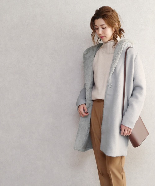 【ポイント】防寒とおしゃれを両立。 さっと羽織って簡単おしゃれ。ボリュームネックデザインでしっかり暖か。さっと羽織るだけでこなれた印象に。ハインネックニットと合わせてシンプルにまとめてもしっかり決まる優秀アウターです!☆スタッフおすすめポイント☆首元を冷やさない温かアウターなのにこなれたデザインでデイリーに着まわせること間違いないなしです。【生地感】表生地は起毛がかった生地でしっかり暖か。首元からフードにかけてデザインされたファーはとても滑らかな肌触りで優しい着心地。【サイズ感】普段Sサイズ着用の方⇒○普段Mサイズ着用の方⇒○普段Lサイズ着用の方⇒△※体型やお好みにより個人差がございます。 あくまで着用時の雰囲気の目安としてお考え下さい。※モデル着用写真は撮影環境により、多少実際のカラーと異なる場合がございます。予めご了承をお願いいたします。 ※生産時期により若干の色ブレやサイズの変動が生じる場合がございます。予めご了承くださいますようお願いいたします。