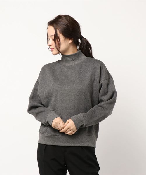 裏起毛素材であたたかいのがうれしいハイネックプルオーバー。ルーズなシルエットで着心地がよく、華奢見せ効果が期待できるのもうれしいポイントです。パンツともスカートとも好相性のシンプルトップスは、ワードローブに備えておくと重宝すること間違いなしです。