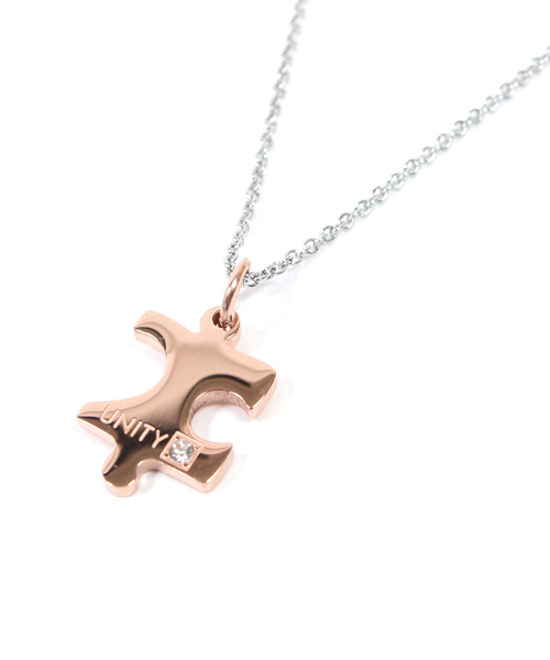 パズルのピースをモチーフにしたトップスのネックレス。 男性用はブラック、女性用はピンクゴールドを使ったゴージャス仕様。これ一つで着用頂くのは勿論、既にお使いのネックレスにも合わせた重ね付けもオススメ。 お値段もお手頃で、ご自身用は勿論、プレゼントにもオススメです。 WEGOの特集ページはコチラ