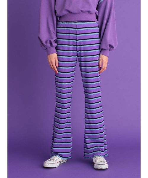 定番の脚長効果のあるテレコパンツ。前回よりも少しフィットアンドフレアでさらに美脚効果も。新色で他ではあまりみない可愛いマルチボーダーも!テレコ素材で履きやすく馴染みやすいところも◎Tシャツなどにもぱきっと映えるカラーがおすすめ。