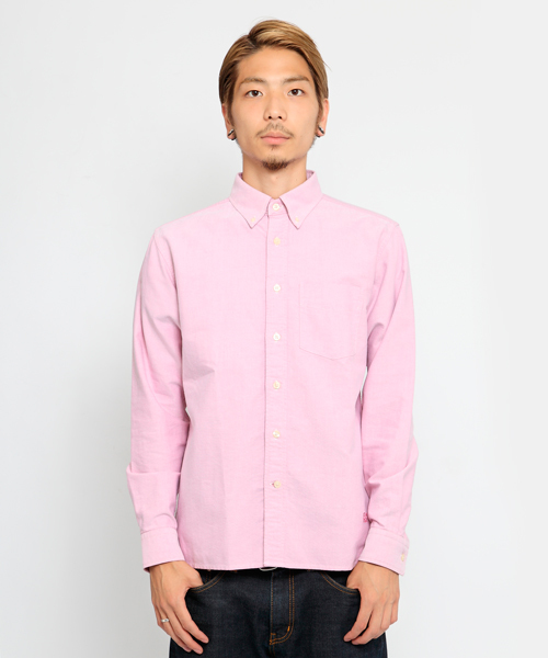 ソリッドなオックスフォード生地のボタンダウンシャツ。左裾部分にXLARGEロゴ刺繍。ロープライスアイテム。モデル身長:178cm 体重:60kg 着用サイズ:M