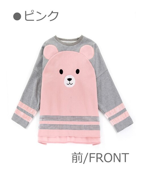 ♡2018Winter New Collection♡ ビッグKUMAスウェットトップス クマさんの顔のビッグスウェット 裏起毛素材でワンピースとしてもOK ゆったりパンツと合わせてゆるゆるコーデに [ピンク×グレー][キャメル×白]の2色展開