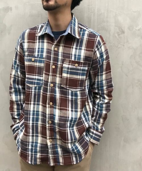 【日本製】~made in Japan~男女兼用(ユニセックス)柔らかいリラックス感のある肌触りのヘビーネルチェックを使用したワークシャツです。 ヴィンテージワークシャツをデザインソースにしたディテールがポイントです。 シンプルでデイリーにも使いやすい重宝する定番アイテムです。