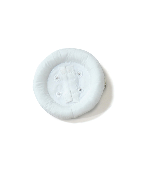 メルシーのボタンバッチ。今年はスポーティーな印象の素材で、新鮮なデザインに。ホワイト・マスタード・カーキ・パープル・レッドのカラフルなラインナップ。服やバッグのアクセントに2色を重ねてつけても○。