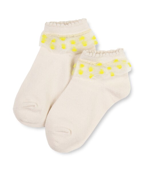 チュール×ドット柄のフリルが可愛いソックスです。ドット柄の配色がちょっとしたポイントです!!短い丈なのでバレエシューズやローファーとの相性がGOOD!!ちょっとしたお出かけ着にもピッタリです。