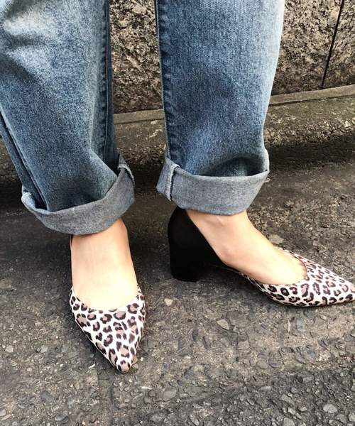注目のアニマル柄をポイントに使ったバイカラーのパンプスです。サイド面がカットされていて、春にぴったりの軽い印象が特徴。カラーがアクセントになるので、デニム合わせがおすすめ!