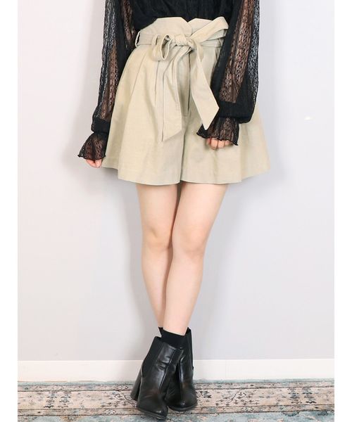 細めのコーデュロイで上品なカジュアルムードをプラスしてくれる コーデュロイショートパンツ。 ウエストにリボンがついているので ウエストラインをすっきりマーク。 ハイウエストなので脚長効果も◎ ふんわり広がるフレアなシルエットで 裾周りはゆったりしているので 足をすっきりキレイに見せてくれます。 タートルネックのニットや ボリュームスリーブのニットをインしたスタイリングがおすすめ。 チェスターコートやダッフルコートなど 長丈のアウターを羽織ってもリボンがポイントになり存在感があるので こらからの季節におすすめです。