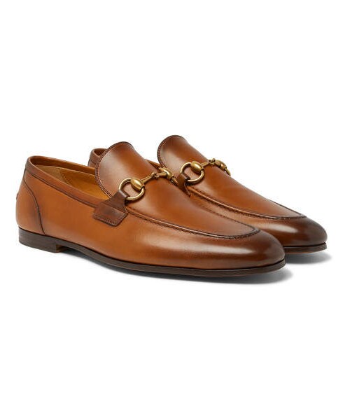 Gucci 's loafers are an icon in their own right, so much so they feature at the Costume Institute in New York's Metropolitan Museum of Art. Made in the house's Italian workshop, this pair has supple leather uppers that are coloured by hand to give the hide a rich burnished effect. They're topped with signature horsebits inspired by the time founder Mr Guccio Gucci worked in London's Savoy hotel. Shown here with Tomas Maier rollneck, Gucci cardigan, Gucci shirt, Gucci trousers. - - Brown burnished-leather (calf) - Burnished-gold horsebits, leather linings and soles - Come with dust bags - Made in Italy