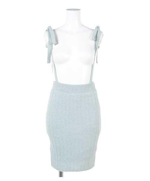 ショルダーでキュッとリボン結びするサスペンダーデザインが、なんとも愛らしいスカート。今季トレンドのタイトフォルム×ミディ丈で、大人っぽく穿きこなせる1着です!ボディラインに程よく馴染む、ニット素材も◎。14ssusg_SND