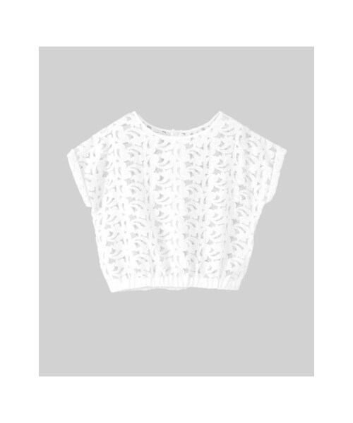 カジュアルスタイルにも取り入れやすく仕上げたレース生地がポイント♪小さいボタンや裾にゴムを入れた丸みのあるシルエットがフェミニンな印象に。ショート丈なのでハイウエストのボトムと合わせるとスッキリ着て頂けます。※ 透け感あり※詳しい洗濯方法については、商品の品質表示タグをご覧ください