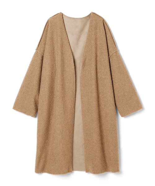 さらっと羽織るだけで大人っぽい着こなしになるガウンコート。 トレンドライクなもこもこのボアがシーズンムードを高める。 ゆったりしたサイジングでヌケ感のある着こなしに。 すっきりとしたノーカラーもスタイリッシュ。 ★ポケット付です。