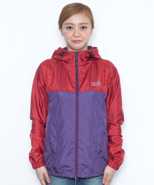 薄手のポリエステルを使用したライトジャケット。配色の切り替えと裏地のメッシュ、旨のリフレクタープリントがスポーツタイプのデザインに。別袋がついているので収納可!