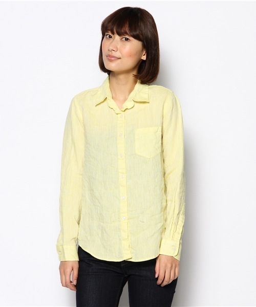 麻素材のカラーシャツ入荷。どの色もとても可愛くて人気があります。素材が麻なので、夏の羽織にもピッタリです。 model:H166 B78 W58 H88 着用サイズ:FREE