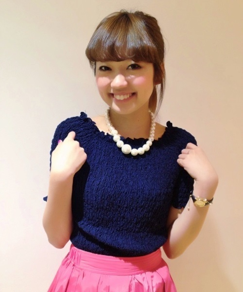 who’s who Chico(フーズフーチコ) 今年らしい肩出しのシャーリングトップスが入荷いたしました♪肩は落とさずに着用できますので、コーデにあわせて使いまわしのきくアイテムです☆アウターの下から、見えるシャーリングが上品で印象的です♪