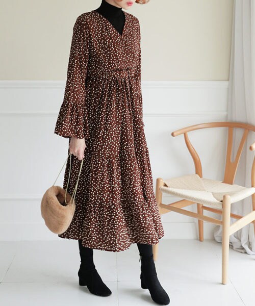 フレアとベルスリーブで優雅に揺れるデザインが魅力的なワンピース。 ※WEARに記載してある金額と、DHOLIC通販サイトに記載してある金額にシステム都合上、稀に誤差が生じます。正しい金額はDHOLIC通販サイトに記載された金額です。