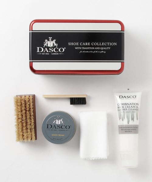 名だたる高級紳士靴ブランドの純正シューツリーを手がける、ダンケルマン&サン社。同社が展開する『DASCO(ダスコ)』は、世界50カ国以上で愛用されているヨーロッパ最大手のシューケア用品総合メーカーです。【仕様】シューケアセット(レザークリーナー、プレミアムシュークリーム、竹ブラシ、ミニ豚毛ブラシ、仕上げ用コットンクロス)