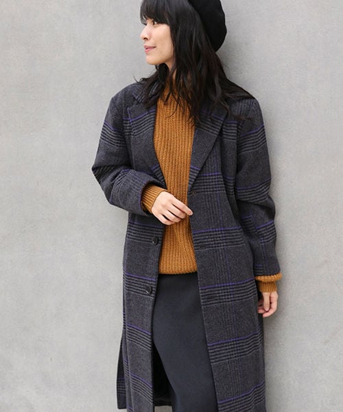 LAKOLEオリジナルのチェック柄で仕上げたロングコート。カラーラインが効いたグレンチェックデザインです。トラッドになり過ぎないよう、ボディのシルエットにこだわりました。【素材】コットンを使用した厚地でなめらかな手触りの生地。フェルトのような感触があり、保温性が高く暖かい生地を使用しています。コットンなので軽く、メルトンならではの暖かみが特徴です。【スタイリング】羽織るだけでスタイリングが一気に決まる、存在感のあるチェックコートです。ロングスカートなどの女性らしいアイテムにも、パンツ×スニーカー合わせのカジュアルなコーディネートにも。