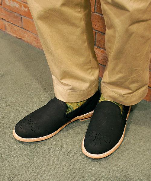 【CAMINAND】 BrogueingSlipOnCaminando【カミナンド】は、2008年に誕生した日本のシューズブランドである。 現在、ニューヨーク、ラスベガスでのエキシヴィジョンを中心に、<インターナショナル>のファッションシーンをマーケットに展開する。 靴作りにおいて<造詣>と<歴史>の深いメキシコでの、伝統的なシューメイキングとハンドクラフトに惚れ込み、同国内にて7社のシューズファクトリーと契約。 熟練した<靴職人>を擁するこれらのファクトリーの中から、モデルやデザインに合わせ、最も適したファクトリーを選定し生産を行う。 マシンメイドでは表現できない、ハンドクラフツ特有の<繊細な表情>や<独特な存在感>を醍醐味とし、メキシコメイドでの<絶対的なクオリティ>に自信を持っている。 <アッパーカジュアル>を意識したラインナップは、常時、レギュラーモデルというのは設けず、春夏、秋冬のシーズン毎に新作としてコレクションを発表。 ワーク、ミリタリー、スポーツ、トラディショナル、ドレスアップと揃え、デザインやスタイルのレンジは多岐に渡るものの、メンズシューズの<ベーシック>から逸脱することなく、常に<スタンダード>なデザインを提案。 シチュエーションとして例えるなら、時に<ファッション>として、時に<カルチャー>として、時に<トレンド>として、誰もが、自由に、自在にセレクトできる。 Caminando【カミナンド】とは、そんなシューズブランドである。