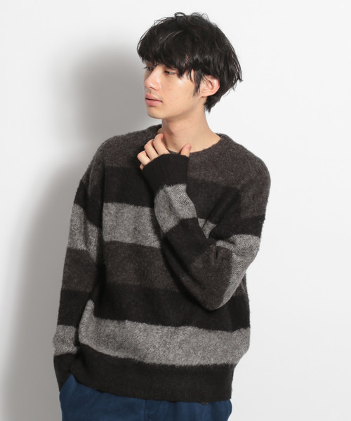 ふわふわの素材感で、あたたかみのあるシャギーニットのボーダープルオーバー。 グラデーションカラーになった太ボーダーはアウターを羽織っても存在感があり、 スタイリングの主役になってくれるアイテムです。軽い着心地ながら、ウール混素材なので保温性も◎