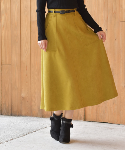 大人のフレアシルエットを描くフェイクスウェードスカート しっとりとした柔らかなエコスウェードがしなやかで女性らしいシルエットを描くフレアスカート。 広がり過ぎないフレアは落ち着いた大人の雰囲気を演出します。 スモーキーパステルのトーンでスタイリングを優しい印象に。 ロング丈なので縦ラインを強調してよりすっきり見えます。 ウエスト後ろはゴム仕様で着脱も楽々♪ 裏地なし 伸縮性弱 薄手 ウエスト後ろゴム仕様 サイドポケットあり 洗濯:ドライクリーニング