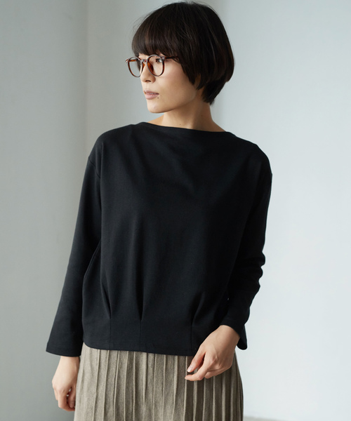 すっきりとしたボートネックが、ヘルシーな女性らしい印象を与えてくれるプルオーバー。 裾にタックを効かせることでニュアンスをプラスし、スタイリングにこなれ感を演出してくれます。 シンプルな無地にすることで着回し力も高く、ワードローブの定番アイテムとしても重宝すること間違いなし。