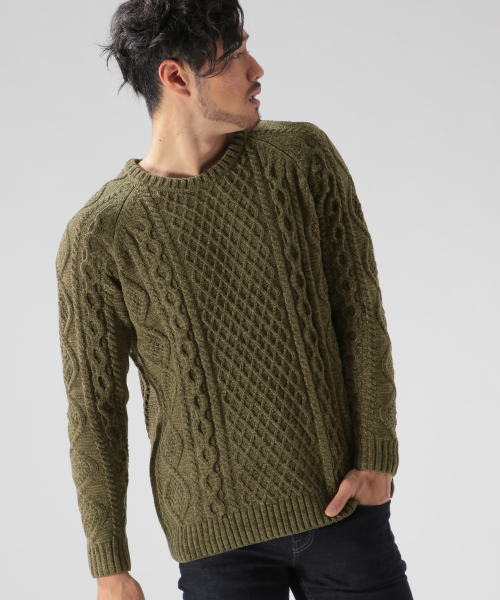 軽い着心地のモール糸を使用したニットプルオーバー。 ケーブル編みで立体感のある表情が特徴です。 チクチクせず肌触りが良いのも嬉しいポイント。