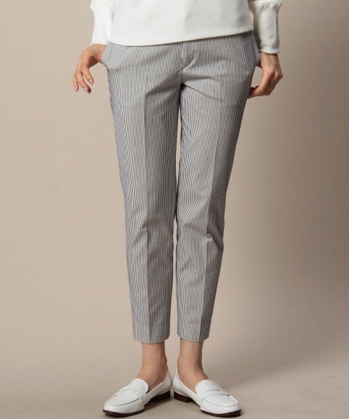 マリンテイストなストライプが新鮮なテーパードパンツ。 クールになり過ぎない白ベースのソフトな配色が印象的です。 トレンドの半端丈でバランスも取りやすく、足元のお洒落も映えるアイテム。 デイリースタイルを彩るアクセントボトムとして是非。 店舗にてお問い合わせの際は、全国のBEAUTY&YOUTH 各店舗まで下記の品番をお申し付け下さい。 品名:BTF MARIN STRIPE 9LS 40 品番:1614-299-3591 model:H165 B80 W59 H88 着用サイズ:SMALL