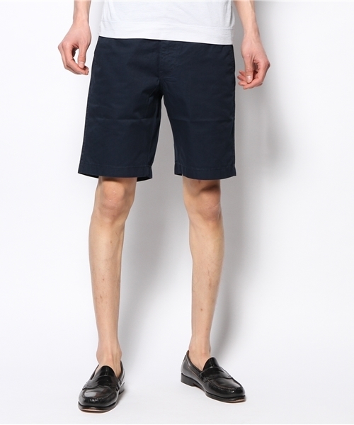 しっかりとしたハリの有るコットンツイル生地を使用したベーシックチノショーツ。 定番商品だからこそ豊富なカラーバリエーションを取り揃えまいた。 シルエットのスッキリとしたスリムライン シャツ、Tシャツは勿論テーラードジャケットなど綺麗目のアイテムとの相性も抜群です。 お手頃なプライスで色違いで何着有っても困らないおススメのアイテムです。