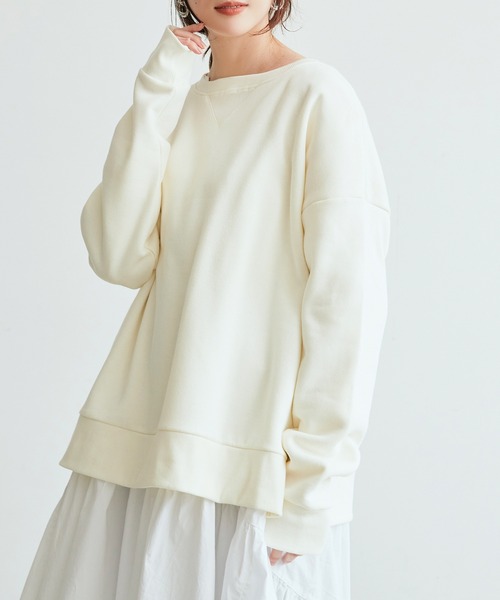裏起毛がふんわりあたたかいスウェット。長めの着丈が腰回りをカバーしてくれます◎オーバーサイズでこなれ感のある着こなしができるアイテムです。生地感:裏起毛スウェット生地 伸縮性:あり 透け感:なし 注意点:お洗濯方法によっては縮みや色あせの可能性あり。乾燥機等のご使用はお控え下さい。▼モデル着用写真は撮影環境により、多少実際のカラーと異なる場合がございます。▼タンブラー乾燥はお避け下さい。