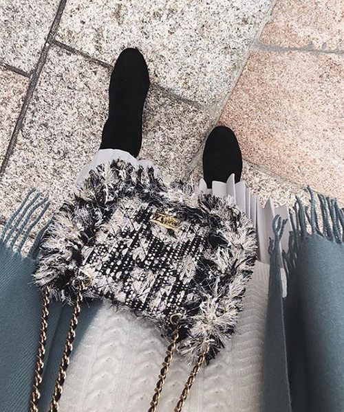 ミックスカラーツイード地ボディで、クラシカルCUTEに仕上げたバッグ。艶めくショルダーチェーンが、華やかさをUPします。 【素材・サイズ感】キラキラ光る糸が織り込まれた、可愛い色合いのツイード素材で、女性らしさをプラスしてくれます。ミニバッグにしては意外にワイドな底マチなので、収納力も◎。 【スタイリング】シンプルなコーディネートのアクセントとしても◎。イベントの多いこれからのシーズン、パーティーワンピなどのお供に最適です。 内側ポケット:2