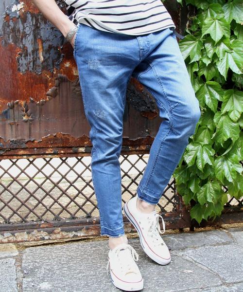 【モンスターヒットデニムをダメージ加工しアンクルカットに】 モンスターヒット中の「ストレッチスキニーデニムクライミングパンツ」に、 トレンド感ある加工を施したタイプが登場。 ◆サイズに関して◆ ・Sサイズは小柄な男性や女性向けに丈感を作っております。155cm~165cm前後の方はSサイズがオススメです。 ・従来のタイプとウエスト~ヒップ~もも周りは同じながらも膝から裾にかけて更に絞り、より肌に吸い付くテーパードスーパースキニーシルエットに仕上げております。 丈もアンクルカットにしているため従来の「ストレッチスキニーデニムクライミングパンツ」をお持ちの方は同サイズをお買い上げの際、丈感にご注意下さい。 ■膝下を絞り更なる細さを追求したテーパードスーパースキニーシルエット ■動きやすさを実現するストレッチ素材×クライミングパンツのデザイン ■通年使える絶妙な生地の厚みのデニム は据え置きにしながらも、 ダメージ加工・アンクルカットでの裾のフレイドヘム加工を施しトレンド感あるデザインに仕上げました。 屈伸などをするとストレッチ感を非常に感じとれ、膝にダーツも入っている為、細いシルエットながらも非常に履きやすく、ストレスを感じにくいスキニーパンツに仕上げております。 ウエストもゴム×ベルト仕様の為、楽に履いて頂けます。 180度開脚可能なガゼットクロッチや片手で調節可能なベルトは健在。 フロントはスナップボタン、前立てはジップフライ仕様、バックポケットはマジックテープ仕様、ベルトを納めるベルトループも搭載しており、利便性も◎。 厚すぎず、薄すぎずの10.3ozに設定したデニムは通年使えるハイパフォーマンスを実現しております。 (※一般的に14oz程度がレギュラーオンスとされます。10oz未満であればライトオンス、23ozなどはへビーオンスと言われています。) なかなか見かけないクライミングタイプのダメージデニムは注目度が高いアイテムとなっております。 ※注意点※ ・インディゴ染め商品の為、摩擦や水濡れなどにより色落ち・色移りする可能性がございます。 【ご注意】 ※商品の色味につきまして、お客様のお使いのPCのモニター環境、設定により実際のカラーと画像の色味が違って見える場合が御座います。予めご了承の上、ご注文下さい。 ※屋外や直射日光のある撮影画像は光の加減で、実際の商品より明るく見える場合が御座います。商品の色味は生地アップの画像をご参考下さい。 ※こちらはWEB限定のため、店頭への取り寄せは行っておりません。 店舗へお問い合わせの際は、全国のCOEN各店舗まで下記の品名/品番をお申し付け下さい。 品名:MC スキニーデニムクライミングアンクル 品番:7540-607-9015 モデル)①H173 B79 W77 H89 着用サイズM ②身長162 B88 W77 H89 着:S ③女性:身長157 着:S ④女性:身長158 着:S