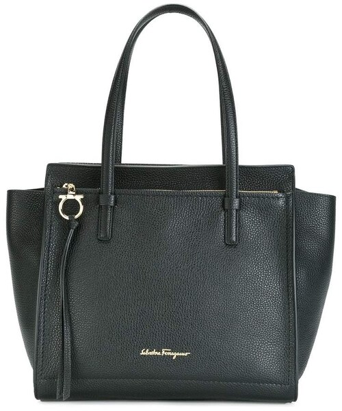 Salvatore Ferragamo is famous for classical Florentine leather craftsmanship and beautifully timeless ready-to wear items. Crafted in Italy, this black leather Amy tote from Salvatore Ferragamo features top handles, a top zip fastening, a front zip compartment, gold-tone hardware, an internal zipped pocket and an internal logo patch.